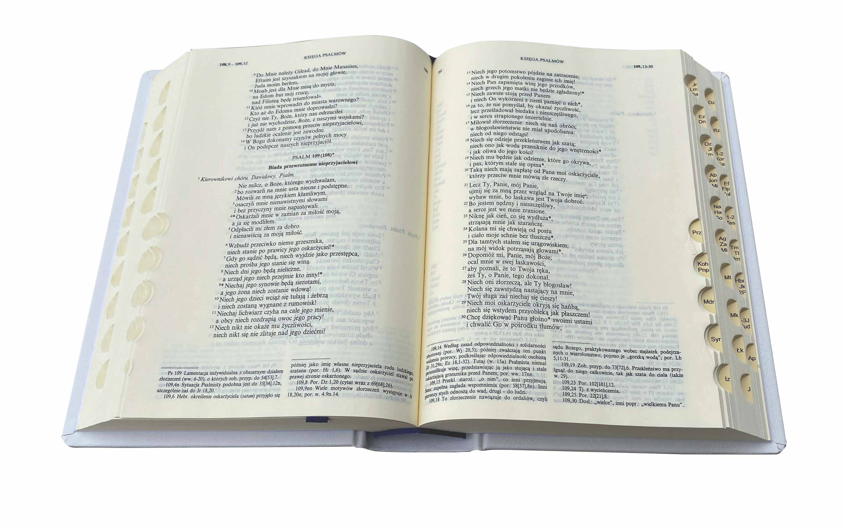 Polecamy bardzo praktyczne, podręczne, pełne wydanie Biblii Tysiąclecia - Pisma Świętego Starego i Nowego Testamentu, tzw. Biblię Pielgrzyma. Kolor oprawy biały, paginatory.